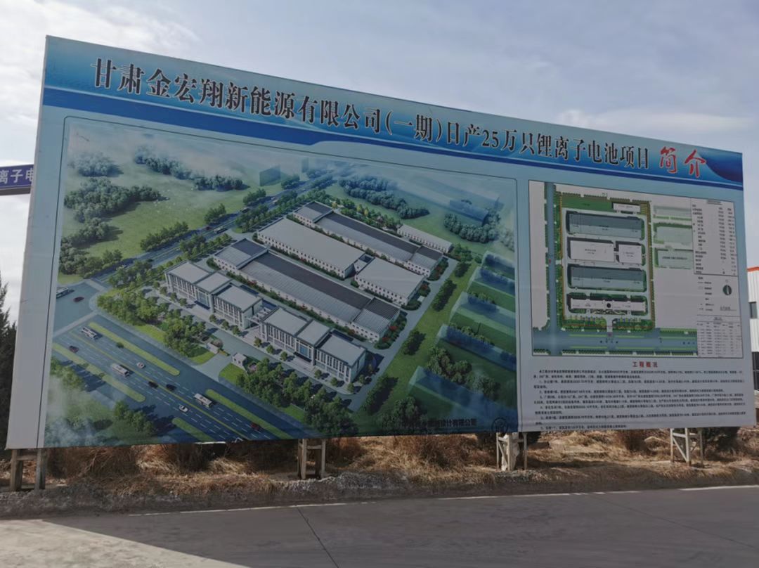 甘肅金宏翔新能源有限公司兩座廠房拔地而起,工人們正加緊施工;